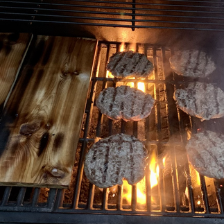 Cedar Planked Cheeseburgers with Red Wine BBQ Sauce