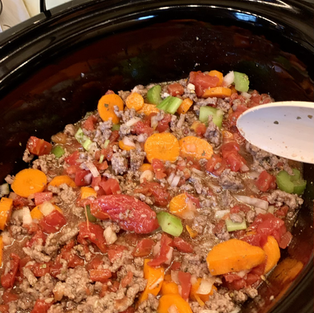 It was an onion, a few carrots, a few stalks of celery, I cheated and used jarred minced garlic to speed things up even more. You'll notice in my picture I used chicken stock; the original recipe called for chicken broth, but if I were to make it again, I would absolutely use beef stock and twice what they recommended - so the recipe here includes those changes.